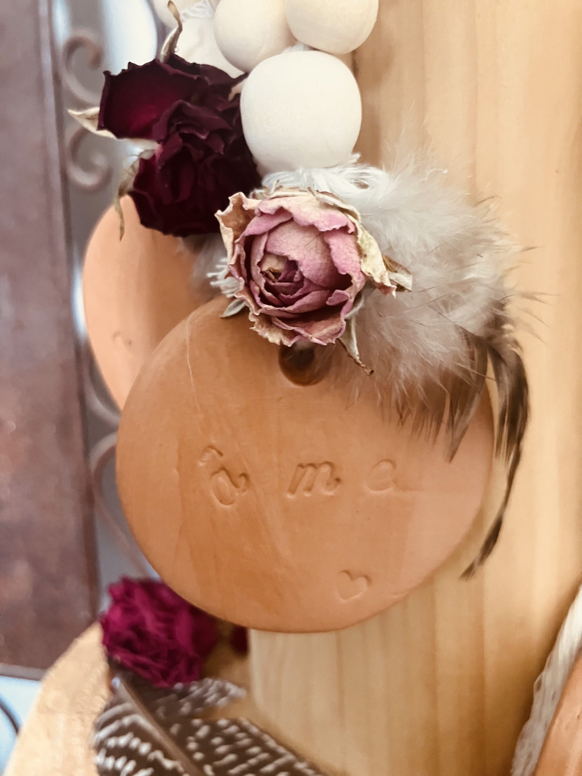 Un anneau de dentition en bois décore ta bougie.