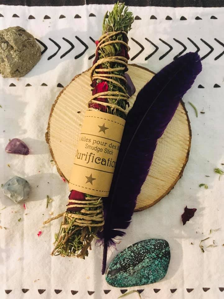 Commencez par vous ancrer, ressentez la connexion à la terre mère, posez vos intentions de purification et remplissez- vous de lumière blanche … Allumez un bâton de fumigation et balayer votre champ énergétique en répartissant avec une plume la fumée du smudge autour de votre corps du chakra coronal au chakra racine. Ce rituel a un effet purifiant et dissipe les énergies négatives et chasse « le mauvais œil ».